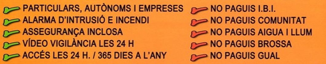 Alarma i vídeo vigilància. Mes segur que un traster en una planta de pàrquing. Control d’accés personal. Cadenat individual per a cada traster.